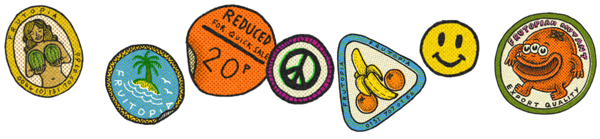 The Frutopian beings presented here are unique and hand drawn, for real, on actual paper with analogue pencils and pens. They are then painstakingly coloured via pirated software on a 15 year old computer and their various features spliced together, creating vast combinations and possibilities. You can view these on Stargaze which is a place for NFT’s, which themselves are like some crypto powered tradeable digital art. But don’t worry if that’s not your thing, there are other ways to get involved. Naturally as this is a project with legs, you can tune into the internet to gain Frutopian knowledge as it becomes available. There are stickers too and even some wearable garments. Eventually however, all crew members will receive a special pass which entitles them to free peace of fruit from any proprietor in the whole world.